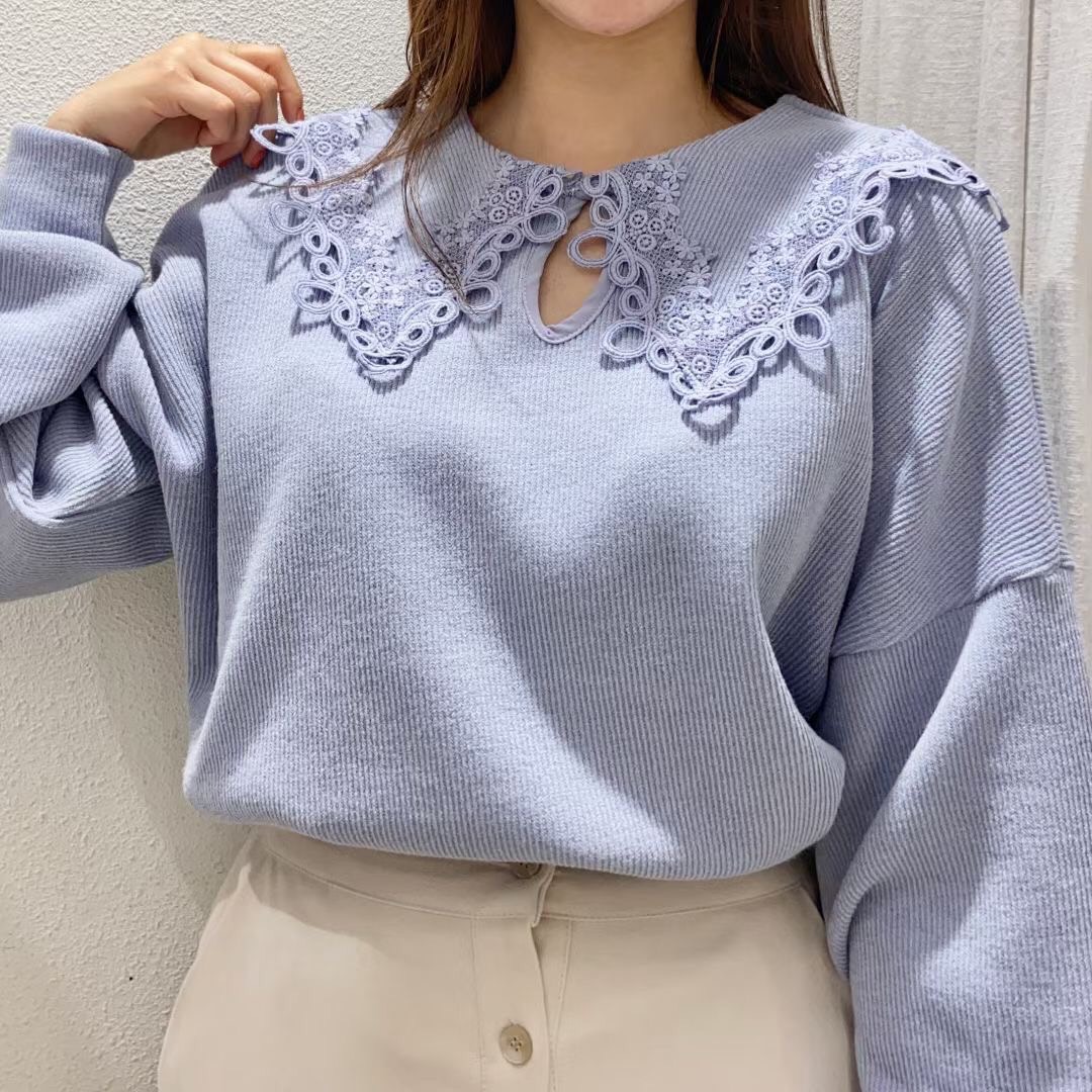 俏皮的大翻領 用蕾絲花邊點綴,俏麗可愛