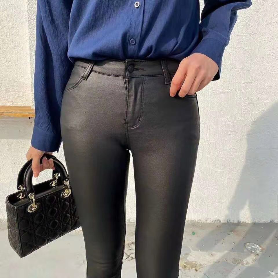 正韓-仿皮彈力褲