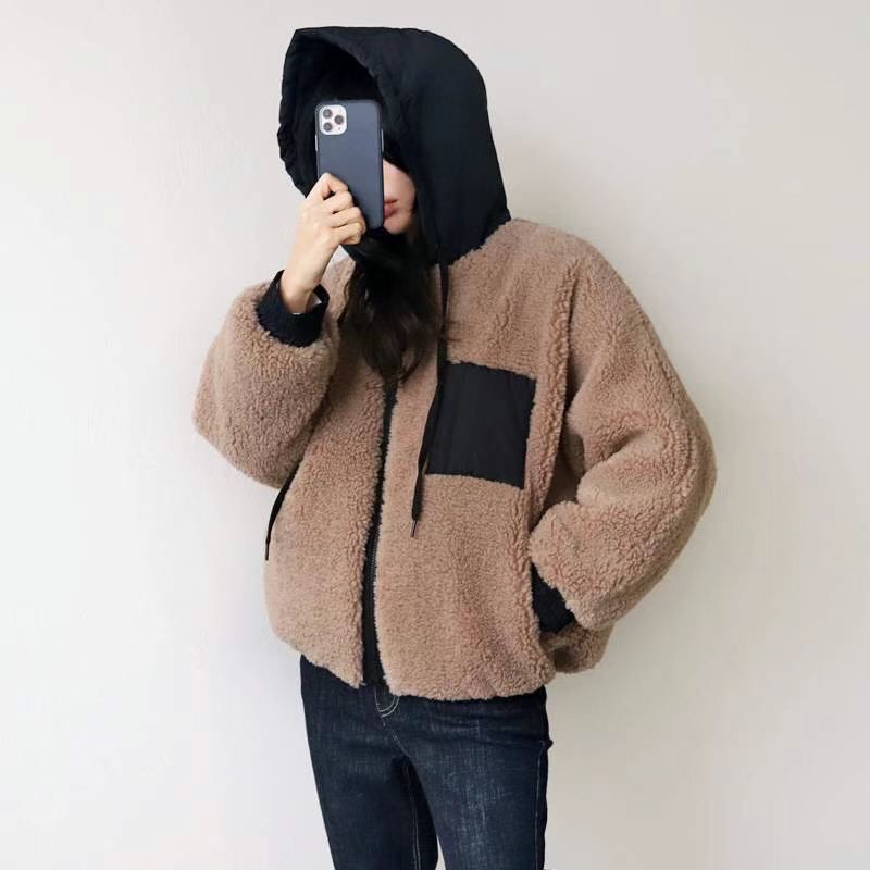 正韓-連帽羔毛口袋外