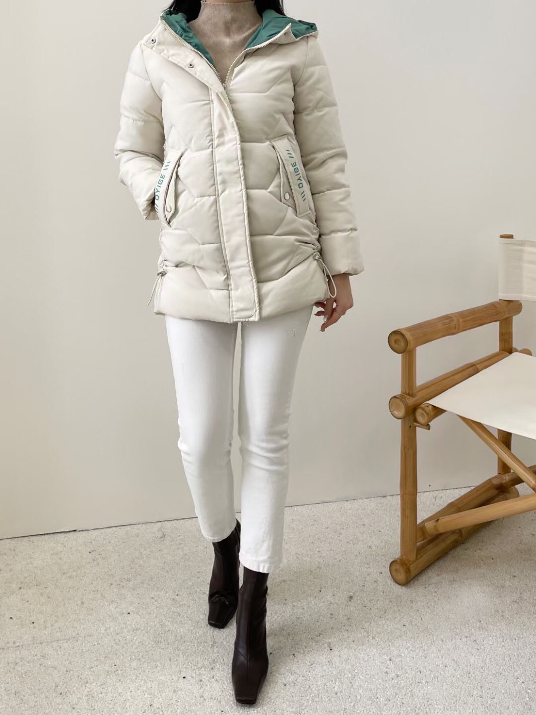color:米白/黑 size:66/77/88 coat- 66- 待量 77-L胸平量51/衣長74 88-XL胸平量55衣長77